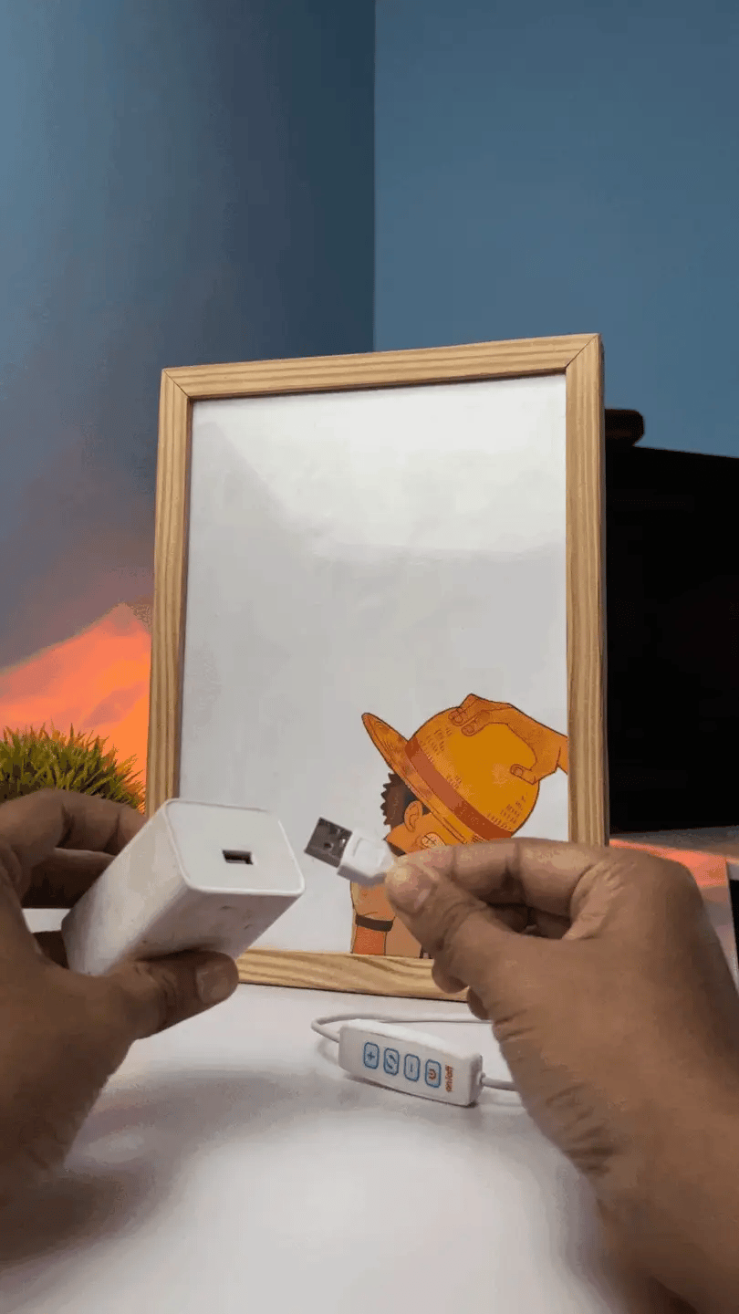 Simply plug in the Virgin Thread canvas using the included USB, switch on the light, and watch as your canvas illuminates with a magical glow!